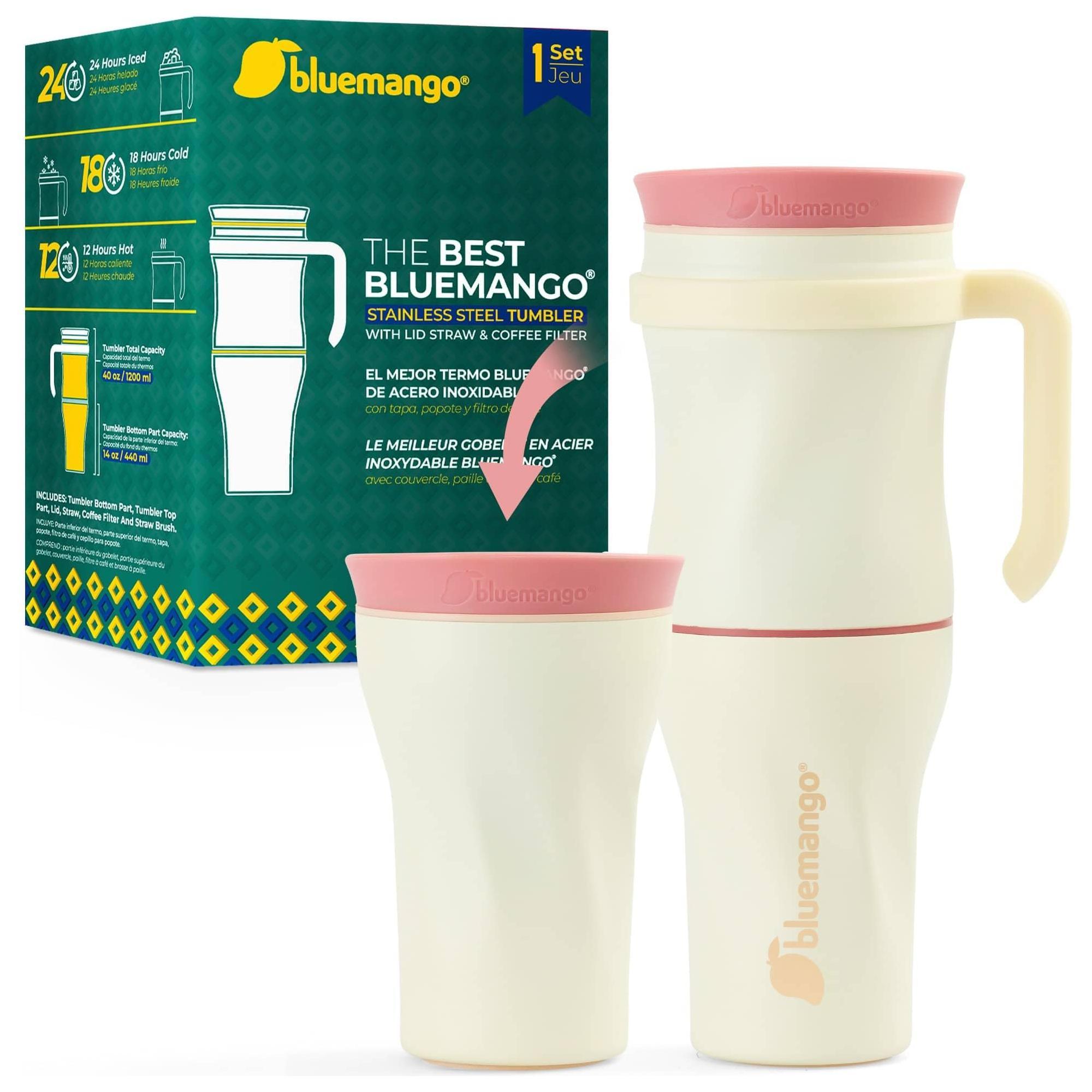 Bluemango 40oz 2-In-1 Tumbler Thermo Cup Mug With Handle - Large Insulated Water Bottle With Lid And Straw, Stainless Steel Vacuum Coffee Tumblers Cups For Travel, Thermal Thermos Bottles For Hot Cold